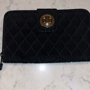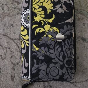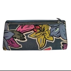 Stylish quilted wallet with vibrant floral patterns. Features a secure clasp.