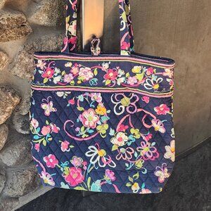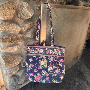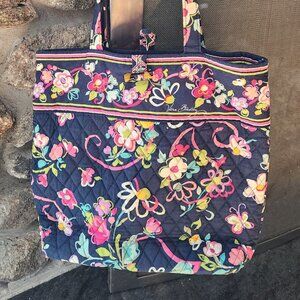 Vera Bradley Floral Ribbons Tote Bag. Strap has a slight tear and is stitched in another place. Body is firm and in excellent condition.