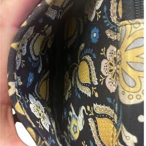 Stylish and functional, this Vera Bradley wristlet features a vibrant floral design in blue and yellow. Perfect for keeping essentials close at hand. Gently loved condition.