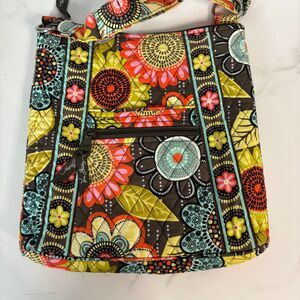Vera Bradley Flower Shower Crossbody Purse Matching Turn Lock Wallet Brown Teal