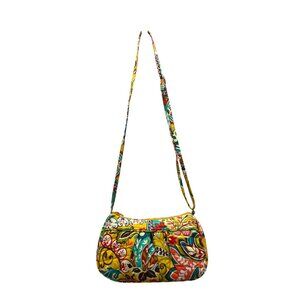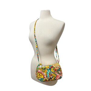 Vera Bradley retired Frannie Provencal crossbody shoulder bag with adjustable strap. Bright, floral design with a vibrant color palette. Lightweight and quilted for comfort. Spacious interior with secure zipper closure.