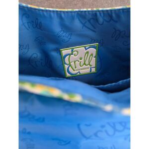 Frill bag comes with detachable strap to turn it into a handbag from a crossbody bag. Silver hardware gives it that extra touch to add some glam. The bag can be spot cleaned with a damp cloth. Magnetic closure makes it easy to open and close. 2 inside pockets. Normal wear. Bag does have a small knick at the bottom of the bag. Please see all photos for details.