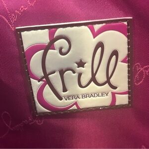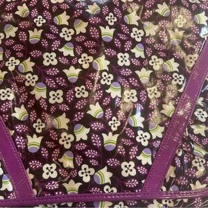 Vera Bradley Frill Vinyl Messenger Bag in Plum Petals Expandable Pockets Laptop