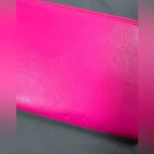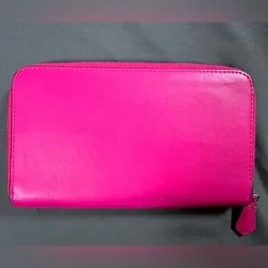 Bold fuchsia leather wallet with zip closure. Elegant and functional. Indents in leather on bag, see pictures