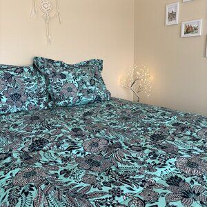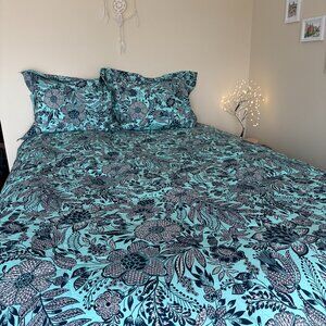 Blue, black and white, comfy floral comforter and pillow sham (2) set. Fits full and queen size matresses.