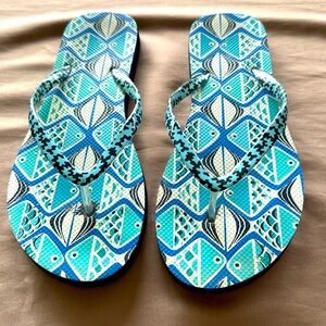 Vera Bradley GO FISH Teal Blue Flip Flops Large 9/10 Patterned Flip Flops