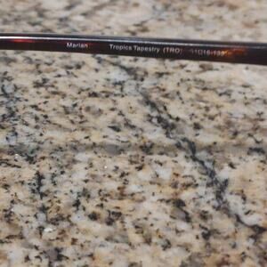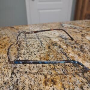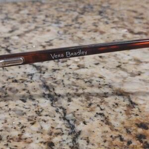 Up for sale is a pair of beautifully designed Vera Bradley eyeglasses with the model name 'Tropics Tapestry' and item number TRO 1015-135. These frames feature a captivating combination of sleek metal with a hint of vibrant pattern on the sides, ideal for everyday wear. The frames are lightweight and stylish, offering comfort for any occasion.
