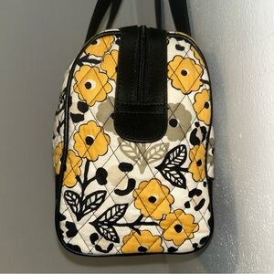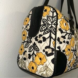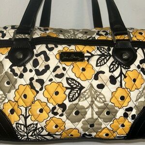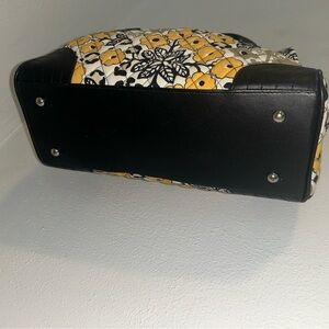 Stylish handbag featuring a vibrant floral design in black and yellow. Perfect for adding a pop of color to any outfit.