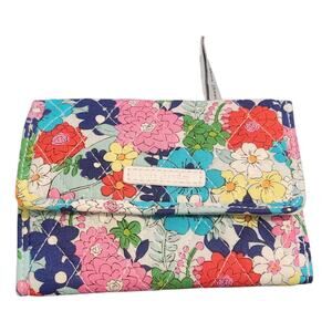The Vera Bradley Grab & Go Wristlet Wallet in Havana Rose offers a stylish and secure accessory for women on the go. Featuring a floral pattern in a vibrant multi-color design, this wallet includes RFID blocking technology to keep your credit cards safe. With a convenient wristlet style and zip-around closure, this wallet is both fashionable and practical, perfect for carrying all your essentials in a chic and colorful way. Made from cotton with quilted accents, this wallet exudes a feminine and unique charm.