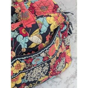 The Vera Bradley Grand Traveler Happy Snails Weekender Large Overnight Bag is a stylish and functional travel bag designed for women. Featuring a multicolor paisley pattern with silver hardware accents, this large duffle bag has a quilted finish and is made of cotton material. It includes inner and outer pockets, a padded design, and an adjustable detachable strap for added convenience. This Vera Bradley Weekender bag is perfect for travel occasions and adds a touch of happiness with its fun character design.