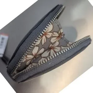 Vera Bradley Gray Faux Leather Essential Round Coin Purse Daisy Zip Pouch NWT