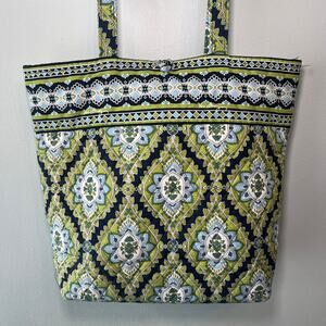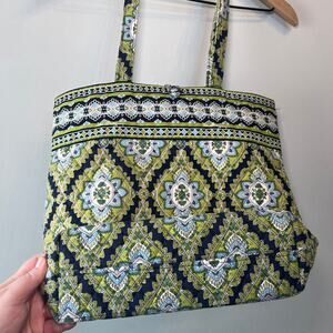 Stylish Vera Bradley tote with retired green and blue pattern.