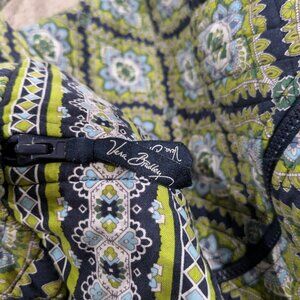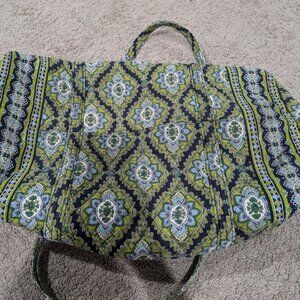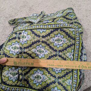 So beautiful and reminds me of LoveShackFancy. Stylish travel bag with intricate green and blue patterns. Features comfortable handles. Perfect for travel.