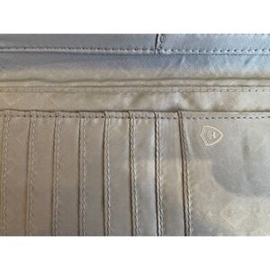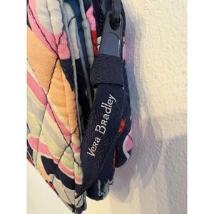 The Vera Bradley handbag features a built-in wallet with a colorful paisley blue floral pattern, perfect for women looking for a stylish accessory. The wallet has a zip-around closure and a folding design for easy access to cards and cash. Measuring 8" x 5", this multi-functional piece combines convenience and fashion, making it ideal for everyday use.