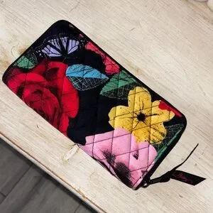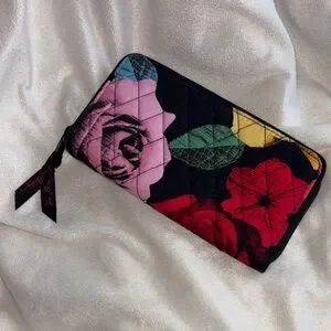 🌸Vera Bradley Havana Rose Black Floral Quilted Colorful Zip Wallet Like New