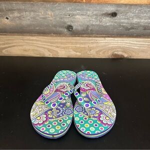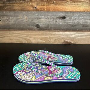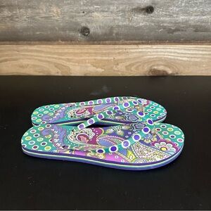 Vera Bradley Heather Paisley Flip Flops Thong Sandals Flats Teal Women Size 9-10