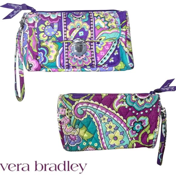Vibrant Purple Paisley, Quilted Material, Push-Lock Closure, Wristlet Wallet Clutch by Vera Bradley Excellent Condition!