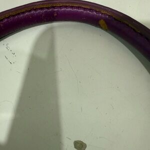 Vera Bradley Heather Purple Paisley Purse Two leather Handles Zip Pockets 2013. Very nice and clean Vera Bradley purse. This purse has not been used. It has a double zip closure leather handles 6 pockets and sits on 4 little feet. Great purse and very colorful. Very clean inside and out. There is some wear that is visible on the handles (See photos) but it seems to be normal wear of a slightly used purse.