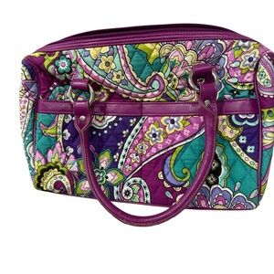 Vera Bradley Heather Purple Paisley Purse Two leather Handles Zip Pockets 2013