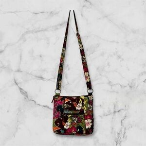 Keywords: Vera Bradley, crossbody bag, quilted cotton, floral pattern, multicolor, adjustable strap, casual, medium size, lightweight, pre-owned, excellent condition, women's bag, versatile, secure zip closure, everyday use.