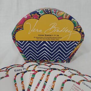 Vera Bradley How Sweet It Is 20 Dessert Recipes Boxed Cards By The Vera Bradley Design Team. Pre-owned, very clean, no stains or spots on the individual cards. One minor bend on the top of one card. Basket shaped box contains 20 of the favorited recipes from her design team. Each has their name and position on the bottom of each card. Measures 5 1/2 inches wide, 4 3/8 inches tall by 1 1/2 inches deep. Please see all pictures, sold as seen and described. I will gladly combine shipping when possible. Thanks for looking.