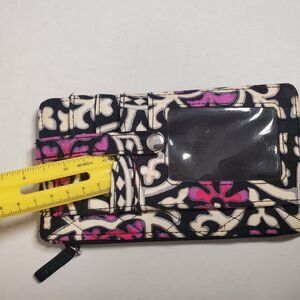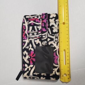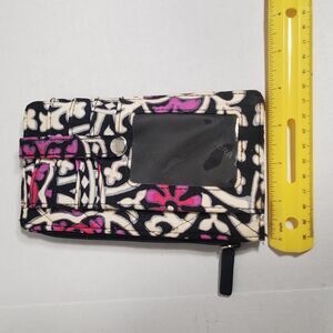 Vera Bradley ID Wallet Wristlet Card Holder Black Pink Floral Quilted