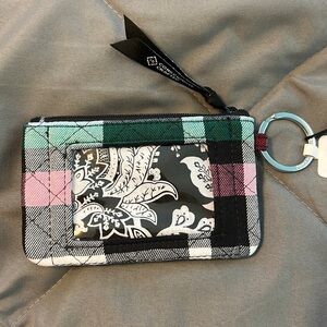 Vera Bradley ID/Money case, silver Key ring plastic window zipper closure