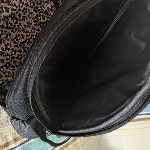 Microfiber is lightweight, solid-colored polyester. Exterior features two zip pockets (one front and one back) and two side slip pockets