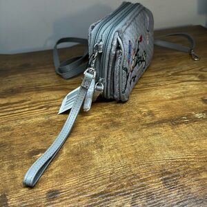 Vera Bradley Iconic RFID All in One Crossbody Wristlet Gray Dragonfly Flower NWT