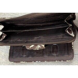 Vera Bradley Imperial Toile Floral Garden Birds Brown Quilt Turn Lock Zip Wallet