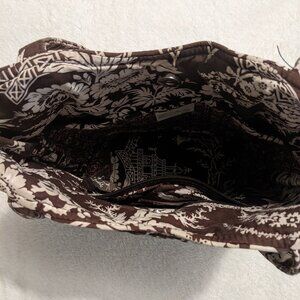 Vera Bradley Retired "Imperial Toile" large tote/purse in brown and white tapestry print. Made with Vera Bradley's signature quilted cotton. Magnetic inner closer along with 3 inner pockets and a zippered pocket. Outside zippered pocket. Roomy main compartment. Measures 10" high without straps and 12” wide. Sturdy double handles. Comes with matching mini wallet (3.5” x 5.5”).