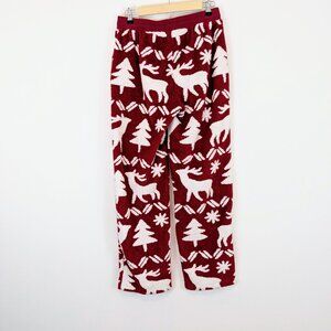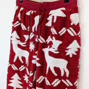 Jacquard Fleece Pajama Pants in Reindeer Intarsia Red