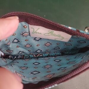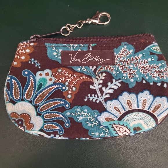 Vera Bradley clip zip coin purse in Java Blue pattern. 4 1/2 inch wide and 3 inches tall with a large lobster clip on the zipper pull to attach to your favorite purse. Clean both inside and out with no tears stains or rips.