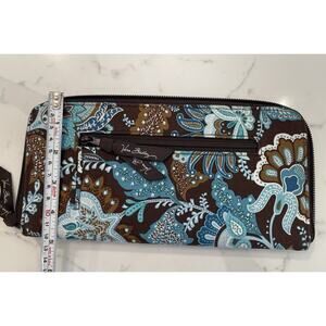 Vera Bradley Java Blue Travel Organizer Wallet Passport Brown Teal Zip Retired