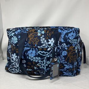 Vera Bradley Java Floral Grand Weekender Duffel Bag Navy Blue Brown Travel