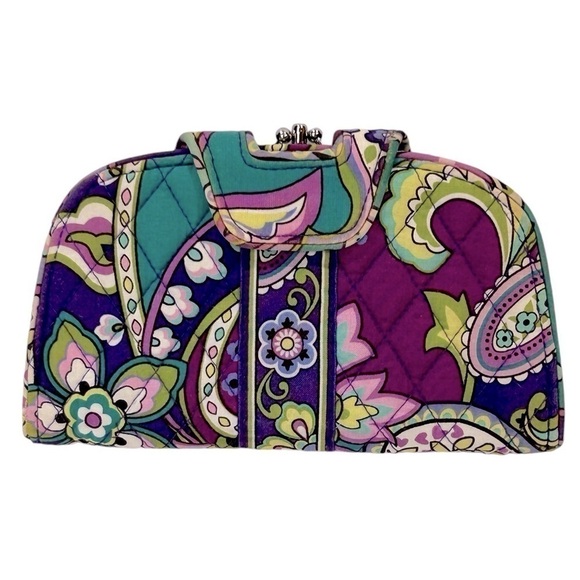 Vera Bradley Kiss N Snap Wallet/Clutch Paisley Jamboree Purple/Green/Pink GUC