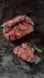 This vibrant women's bag set features intricate floral embroidery in pink and multicolor designs.