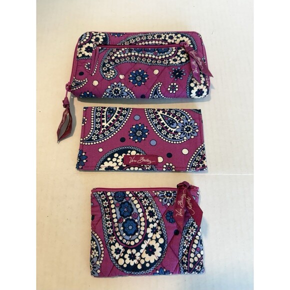 Vera Bradley Knot Just a Clutch Purse Boysenberry Paisley Pattern Retired 3 Pcs
