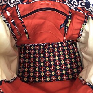 Vera Bradley LARGE Colorblock Tote Sun Valley Orange Blue Canvas Beach Travel Bag