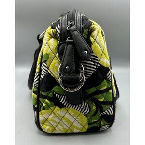 Vera Bradley La Neon Rose Quilted Floral Handbag Satchel Green Yellow Black