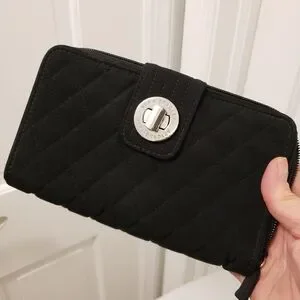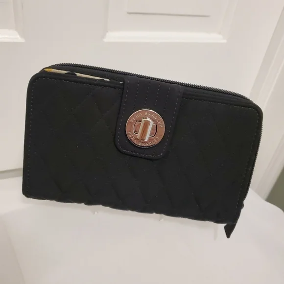 Vera Bradley Large Black Quilted Turnlock Close Wallet, Preppy, Versatile