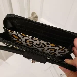 Lovely large black Quilted wallet with shiny silvertone hardware