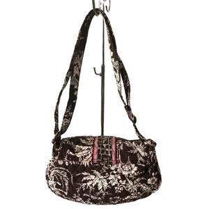 Vera Bradley Large Imperial Toile Brown & Pink Oriental Design Handbag 13X9 X4.5