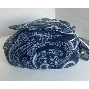 Vera Bradley Large Quilted Blue White Floral Fabric Crossbody Purse Saddle Bag