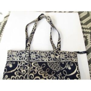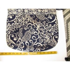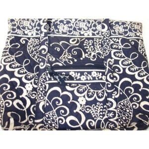 Vera Bradley Large Shoulder Bag, 14" x 12" All zippers work. Navy Blue, White. Pockets on 1 side, 1 open, and in front, 1 zipped. (Stacked).Strap 11" drop.
