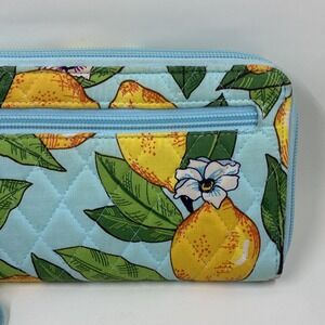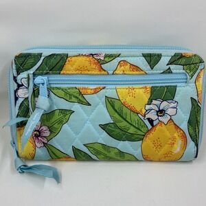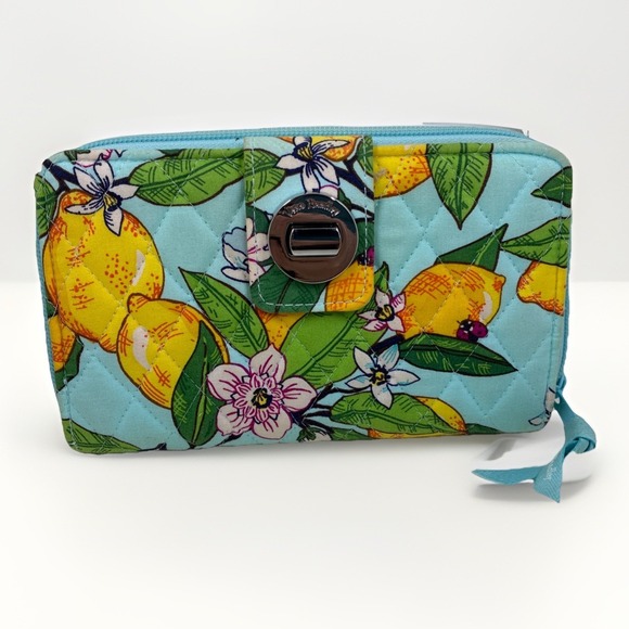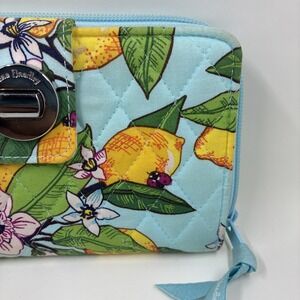 Vera Bradley Lemon Grove Turnlock Wallet Teal, Yellow, Leaves, Ladybug, Flowers