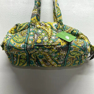 Vera Bradley Lemon Parfait Tote Retired Pattern. This tote has a pretty yellow background with gray, white, green & brown paisley & floral pattern. Lots of pockets on the interior for storage. Zipper top closure. New with tags attached.