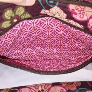 Vera Bradley "Libby" Brown & Pink Mod Floral Fabric Small Shoulder Bag 10"X6"X3"