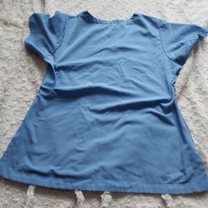 Stylish V-neck scrub top with short sleeves. Features practical pockets.