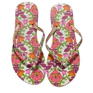 Vera Bradley Lilli Bell Floral Flip Flops Size 10 Pink & White Multicolor Design